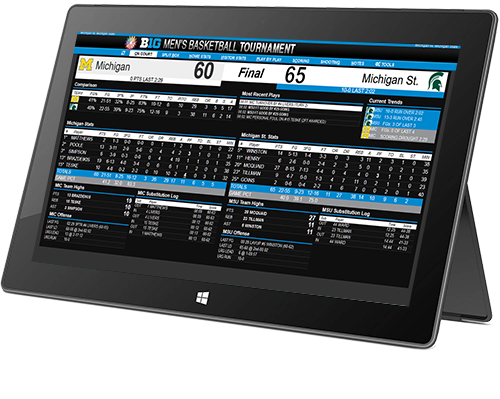 StatBroadcast offers stat monitor hardware available to schools on an academic-year lease or to events on a short-term rental. StatMonitrs can be used to display real-time statistics for your broadcasters and staff throughout your venue, using either wireless or wired internet.
