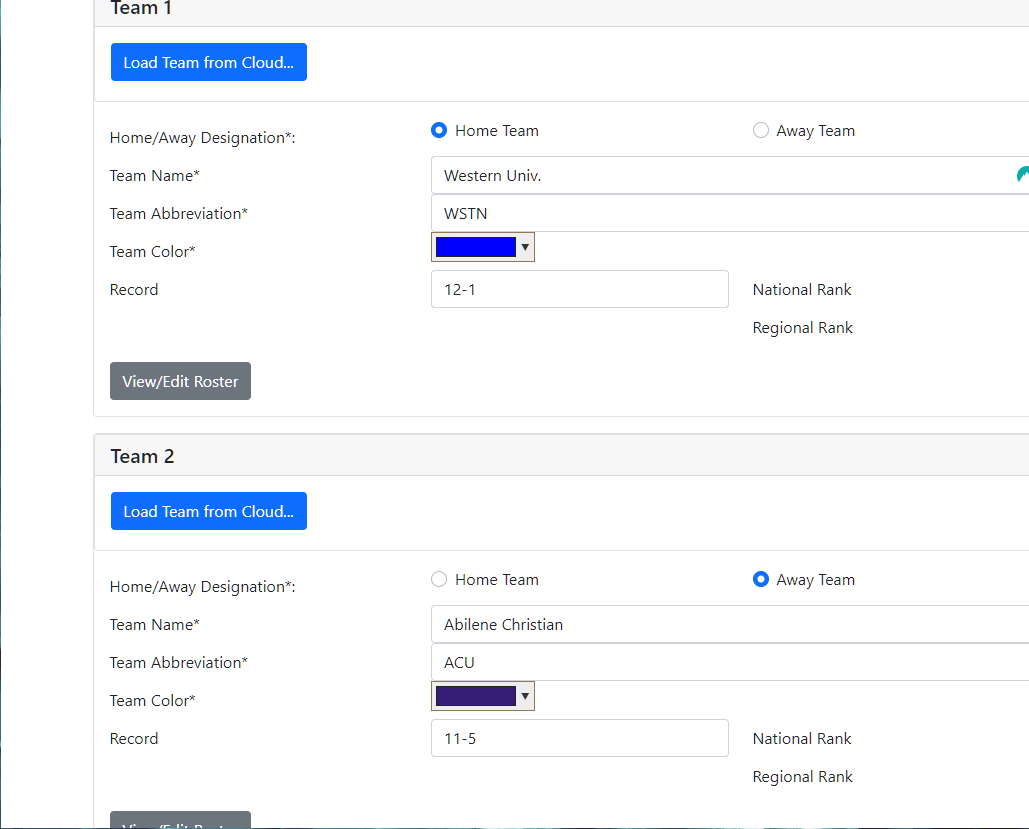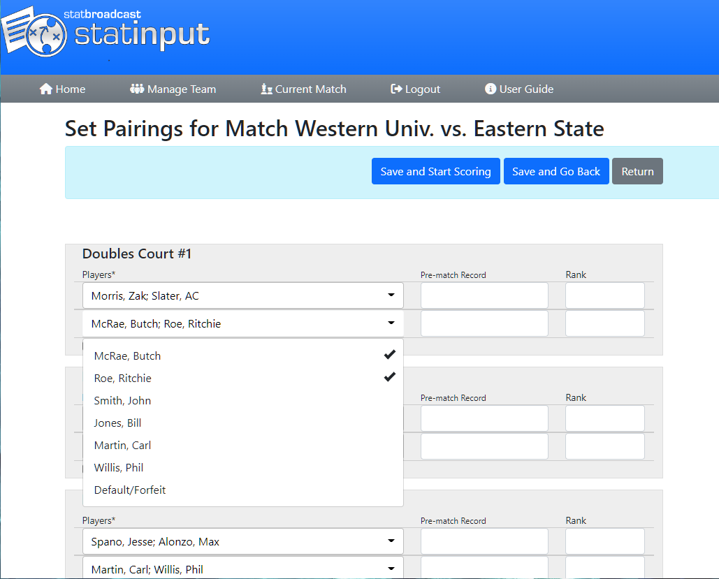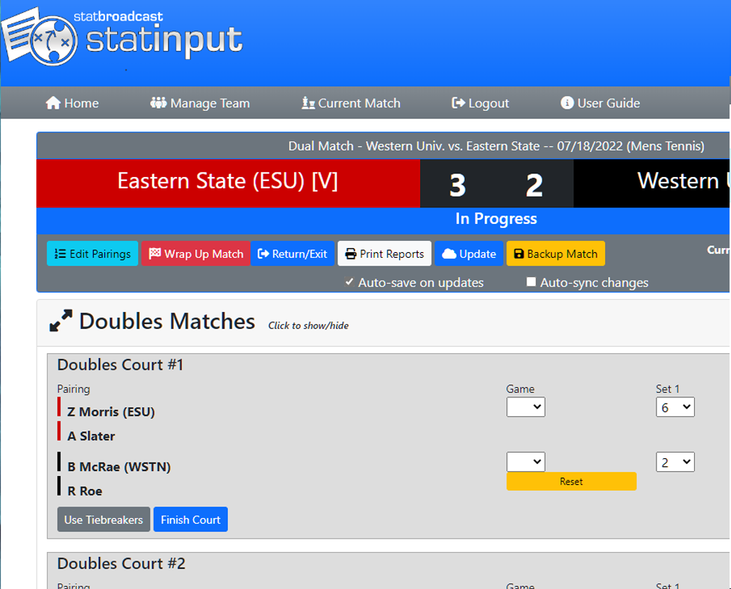 StatInput also allows for multiple devices to access the same event, so you can have multiple people updating your matches at once, or have one person live scoring and another person entering corrections.